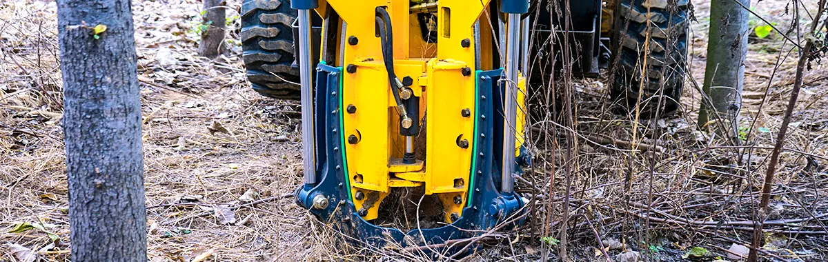 A tree spade is a machine that mechanizes the transplanting of large plants, such as large bushes and small or medium trees. When choosing the right-sized tree spade, you should consider the type of tree, the size of the root ball, digging depth, and if you plan to replant the tree.
