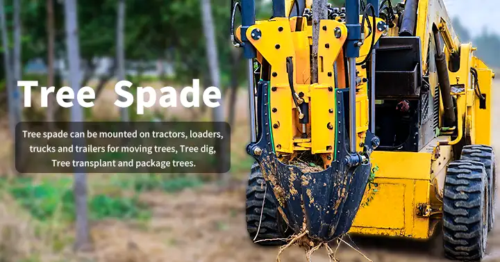 Tree spade can be mounted on tractors, loaders, trucks and trailers for moving trees, Tree dig, Tree transplant and package trees.